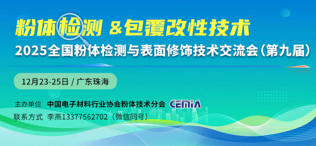 为了深入探讨粉体检测与表征分析领域的最新技术进展与难点问题,充分交流粉体表面修饰改性方面的创新方法与成功应用经验,共同推动我国粉体产业的高质量升级,中国电子材料行业协会粉体技术分会定于2025年12月23日-2...