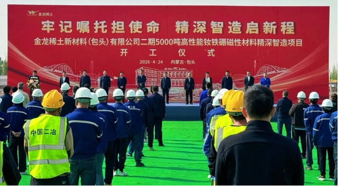 4月24日,金龙稀土新材料(包头)有限公司二期5000吨高性能钕铁硼磁性材料精深智造项目在包头稀土高新区正式开工,建成后将与一期项目形成万吨级产能集群,进一步巩固包头在全国稀土永磁材料领域的领先地位。据了解...