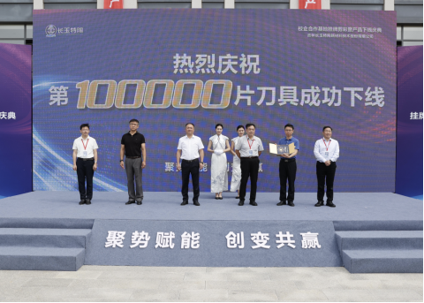 当日,长玉特陶现场发布了高熵陶瓷粉体、双相SiAlON陶瓷刀具——HLS100、陶瓷基板、氮化硅陶瓷基板等新产品。同时,长玉特陶第10万片刀具从车间成功下线,彰显着全体长玉特陶员工追梦创业,与企业共成长的坚定信念。