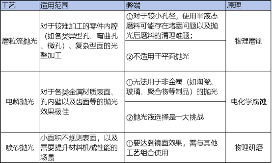 以上几种工艺,在医疗器械上的应用各有优点,也各有局限,对于一种医疗器械,单一的工艺有时无法达到所需的抛光要求,这种情况下可以将多种抛光工艺组合使用的,以达到所需的抛光效果,比如可用磨粒流抛光医疗器械的孔隙后,再用电解或者喷砂处理磨粒流无法抛光的表面,保证整个工件都能得到抛光。