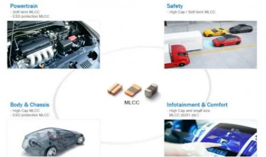 随着全球环境规制的不断加强以及国家相关政策的不断推出,新能源汽车在近十年得到了快速普及,作为汽车行业“新四化”(电动化、智能化、网联化和共享化)的融合,新能源汽车的各类功能需要通过各种电子元器件构建的功能模块来实现的,其中,MLCC(多层陶瓷电容器)是通用的基础元件之一,在电子系统中的使用量居于前列,据相关数据显示,一辆新能源汽车使用的MLCC可达1.8万颗。在ADAS(激光雷达、摄像头、毫米波雷达)、各种控制系统、卫星定位系统、电池管理等都需要使用MLCC产品。