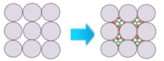 在粒径分布上,单峰分布的硅微粉不能实现最紧密堆积,因此需要不同粒度分布的硅微粉产品进行混合,形成合适的颗粒级配,实现高填充,降低覆铜板制作成本的同时,最大限度地发挥硅微粉的优异性能。