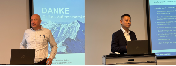 在细川阿尔派,公司资深销售负责人Lothar先生为考察团作了详细介绍。他自1989年加入公司以来,长期服务于矿物部,自2010年起与中国市场建立了密切联系。同时,亚太区售后经理王苏毅先生也介绍了阿尔派在客户服务方面的布局。