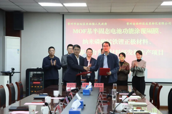 10月25日,据常州金坛融媒报道,包括“MOF基半固态电池功能涂覆隔膜”在内的三个新能源领域新材料成果转化和和中试熟化项目同日签约落户常州市金坛区朱林镇。