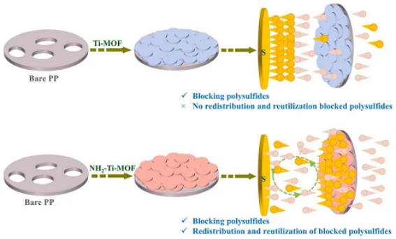 兰州理工大学冉奋团队提出了一种创新的解决方案——氨基功能化Ti-MOF修饰层,旨在解决多硫化物穿梭体的问题,为锂硫电池隔膜设计提供了新的思路和方法,也为其他新型储能电池的隔膜设计提供了有益的借鉴和参考。