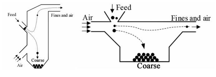 重力式分级的原理是根据不同粒径的颗粒所受重力和沉降速度不同,以及颗粒和流体之间的相互作用进行分级。根据流体流动方向和作用力场的不同,重力式分级又可分为垂直流型和水平流型。