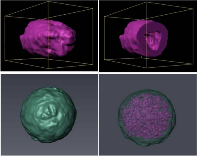 对于颗粒材料,如果只在表面镀一层 Pt 保护层,进行切片后将系列图像重构后得到的结果