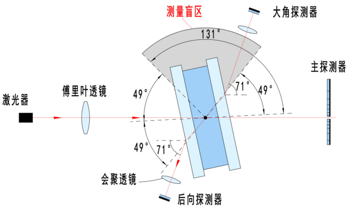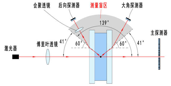 常规激光粒度仪测量窗口的全反射盲区示意图