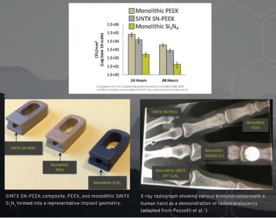 PEEK、氮化硅、SiN/PEEK复合材料三者实验数据比对(SINTX)