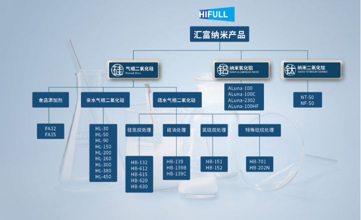 汇富纳米拥有全系列亲水型气相二氧化硅产品,同时开发出不同表面改性剂改性的功能化疏水产品10多个,基本覆盖了国外同类产品,产品性能优于国家标准,部分指标超过国际标准。