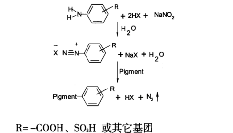 重氮盐表面接枝是一类典型的水性自分散改性路线,可将磺酸盐/羧酸盐等强亲水基团以共价方式固定到颜料表面,从而构建稳定的亲水带电层。在许多专利文件都可以看到类似的工艺路线介绍。