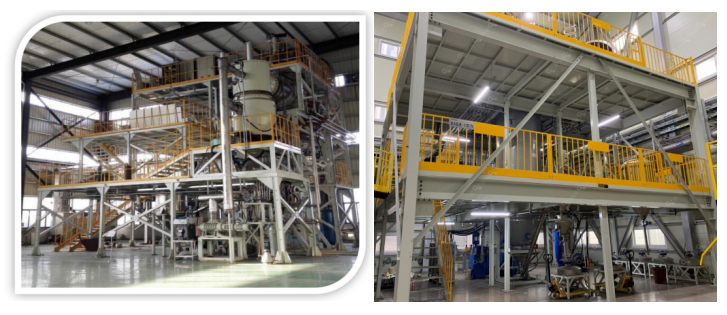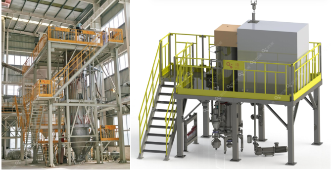 燃气火焰球化装备(左)等离子体球化装备(右)