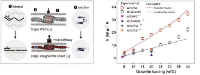(b)实验和理论计算平面热导率随石墨负载量的变化