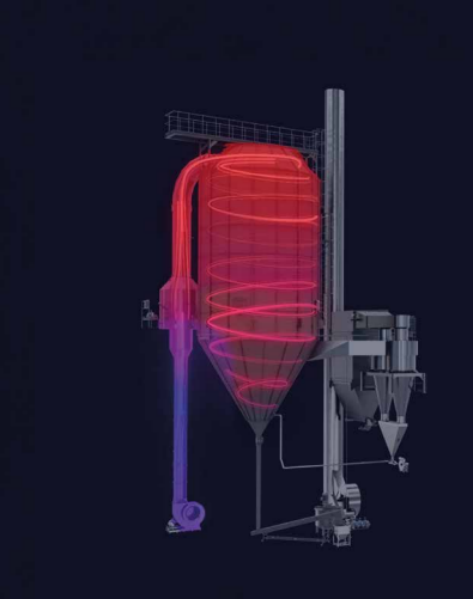 并流或逆流——并流即热空气与液滴同向(通常自上而下),干燥速度快,液滴表面迅速干燥,对热敏性材料有一定保护作用;逆流即热空气与液滴逆向流动,干燥过程更缓慢、温和,适用于需要特殊干燥曲线的材料。