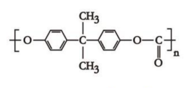 聚碳酸酯是碳酸的聚酯类,工业上常用的PC树脂主要由双酚A(BPA)与碳酸酯基通过聚合反应形成,其中双酚A的结构包含两个苯酚基团通过一个异丙基(-C(CH₃)₂-)连接,其分子式为C₁₅H₁₆O₂,而PC分子整体所构成的重复单元可表示为:[-O-C-O-C₁₅H₁₆O₂-]ₙ,其中n为聚合度,表示分子链中重复单元的数量。