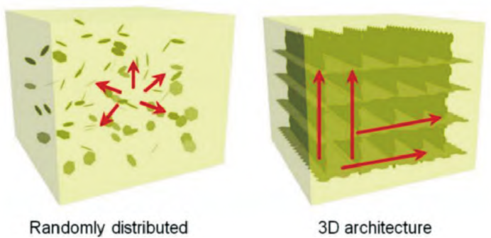 通过力场、电场和磁场等方式对碳基填料进行原位定向处理,可以使其在聚合物基体中有序排列,从而在很小的填充量下充分发挥其面内高导热优势。