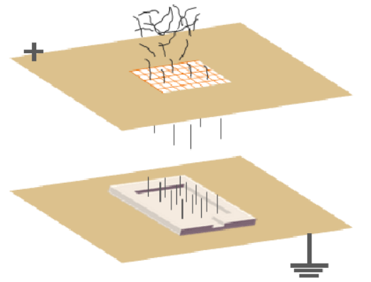 静电植绒制备碳纤维阵列示意图