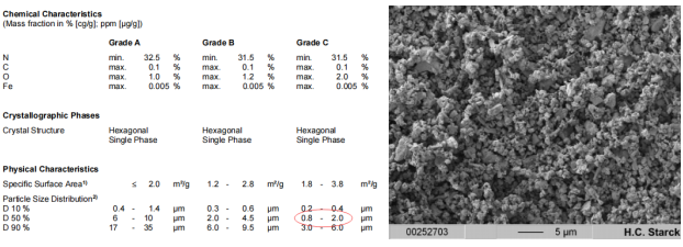 整理不同工艺路线的商业氮化铝粉体参数,我们发现其粒径特征值普遍在D50≈0.8–1.5μm,即最小800nm,远远无法达到500nm甚至以下。有图为证: