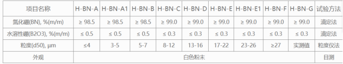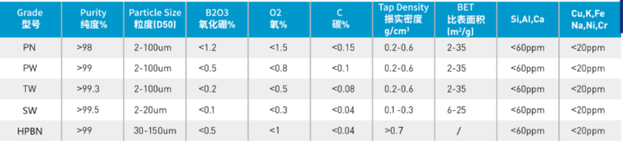 各等级氮化硼典型值(非标准值)