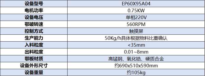 对于大块物料,粗碎环节的效率直接影响后续研磨的负荷。天创的桌机颚式破碎机设备外观精美、占地小,专为实验室及小批量生产设计,主要用于粒度小于30mm各种矿石与脆性物料的破碎,其动鄂转速高达560rpm,可根据需要调整出料粒度,实现粗破和细破两种功能,能将物料破碎至0.5mm以下。