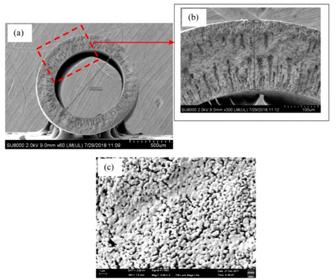中空氧化铝纤维具有高孔隙率,为气体和液体的传输提供了高效的通道;高机械强度使得纤维能够承受较大的压力差;指状孔和海绵孔等不对称结构赋予了纤维膜孔径细小、结构紧密的特性,从而使其具备优异的吸附、分离性能。以中空氧化铝纤维作为载体,创新后处理条件或进行复合掺杂等手段可实现膜性能的进一步优化。