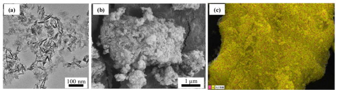 (a)TEM图;(b)SEM图;(c)Al、Si元素分布图