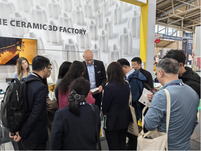 Ceramitec2026关于先进陶瓷展示部分显示:陶瓷3D打印是一个重要的方向,不少相关厂家参展。上图是奥地利知名陶瓷3D打印设备企业Lithoz的CEO Johannes Homa博士在给团友分享他们设备的卓越性能。