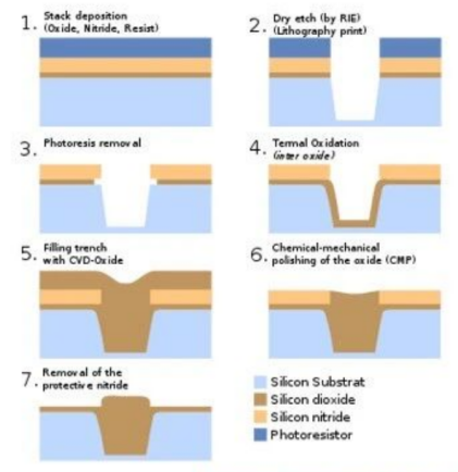 从上述缺陷发生机制来看,IC抛光并非单一工序,而是需要针对芯片不同功能层的特性,开展针对性的抛光处理。以下以浅沟隔离槽(STI)抛光、氧化物层间介质抛光与金属抛光等核心的环节举例: