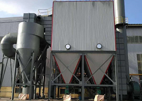 生物质锅炉产生的烟气、粉尘由吸尘管道进入阻火器,此时烟尘中的大颗粒阻火器的作用下拦截下来,大颗粒粉尘由阻火器上的卸料器排出,细小颗粒粉尘进入布袋除尘器。经过滤袋过滤,通过脉冲吹打将粘附在布袋表面的粉尘先集中在除尘器的灰斗内,利用下料控制器进行回收或利用。经布袋除尘器处理过后的净气通过风机由烟囱排入大气。经过布袋除尘器对锅炉含尘烟气的处理,可减小烟尘对周边环境的污染,达到清洁的生产目的。