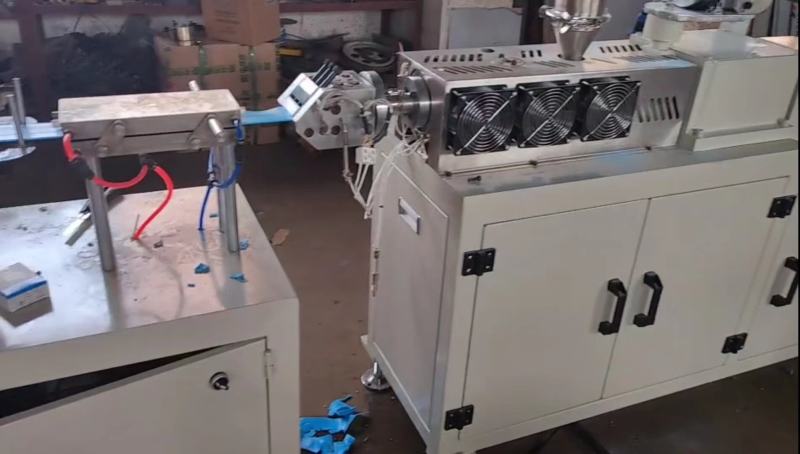 三、试验室配方研发专用试验机组部分:单螺杆混炼挤出机主机→双段冷却水槽→牵引机→三工位收卷机.