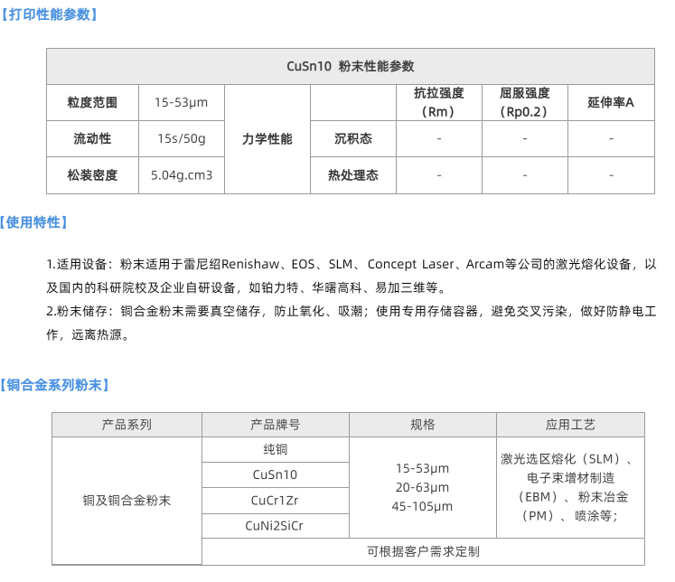 铜锡10锡青铜粉末铜合金粉3D打印球形铜粉