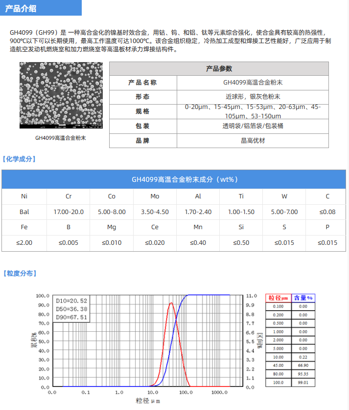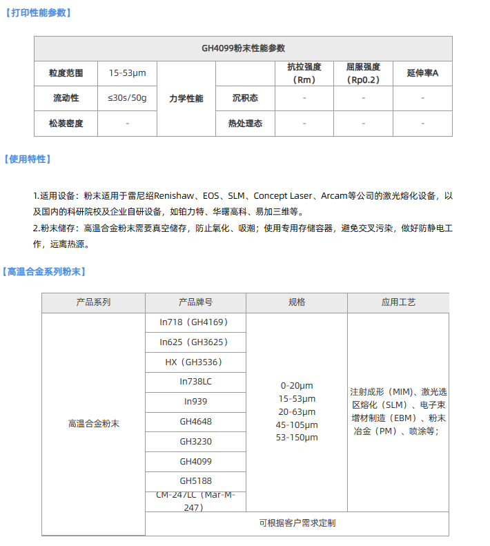 GH4099高温合金粉末 增材制造 金属粉末 粉末冶金 金属材料