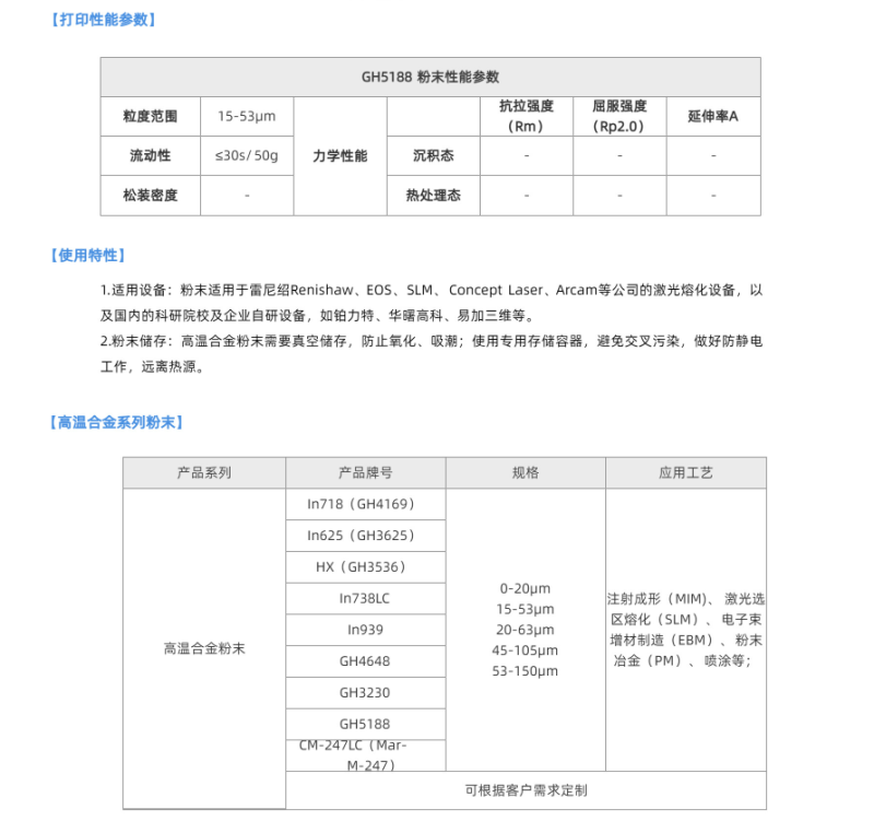 GH5188高温合金粉末 增材制造 粉末冶金 金属粉末 粉末材料