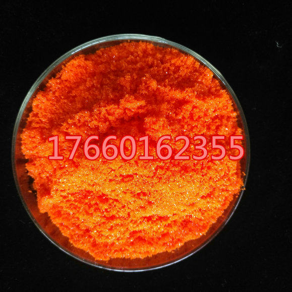 外观性状:桔红色单斜晶系细小结晶,易溶于水,有潮解性,密闭保存。