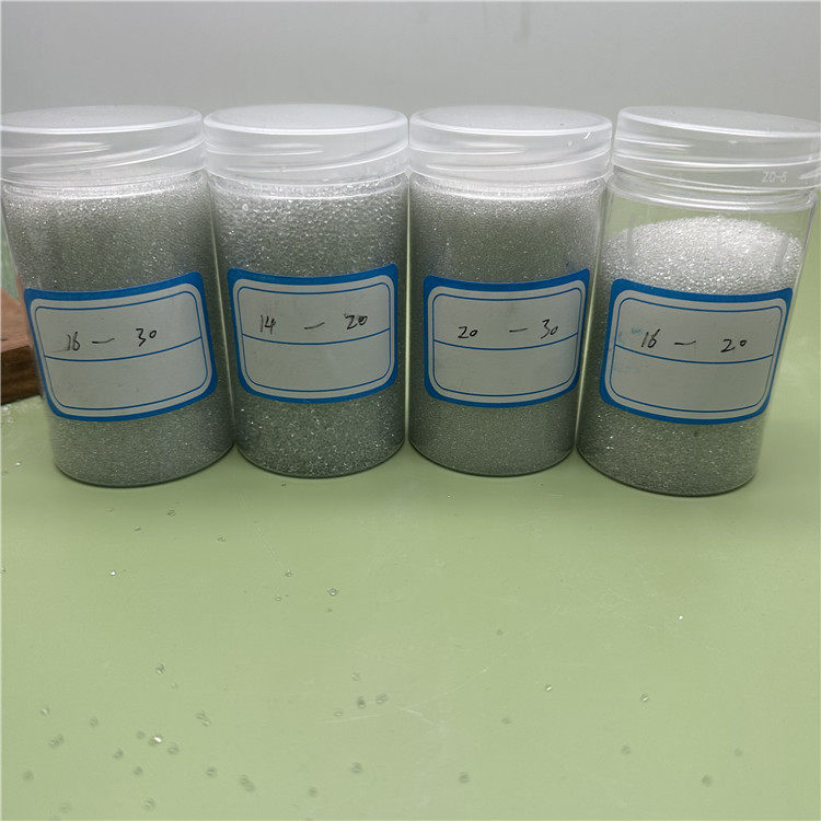 (1)使用钠钙玻璃制成的玻璃微珠具有良好的化学稳定性,一定的机械强度和硬度,因此,作为抛光研磨材料比其它研磨材质有很大的优越性。