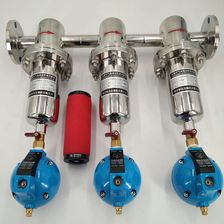 气体过滤器用于压缩空气、氮气、二氧化碳、氦、氖、氩、蒸气等各种气体的净化、除菌、按功能分为预过滤器、粗过滤器、精过滤器等。生物发酵工程用无菌空气过滤。 1:气体流量分规格有0.5-/min, 2:滤器进出口标准法兰连接.滤器材质有SUS304, 3:滤材分别为聚四氟乙烯(PTFE)、玻纤复合毡、钛合金.聚丙烯(PP)等系列微孔产品 4:过滤器同时配有压差计、安全阀、排污阀