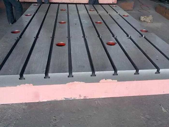 材质:焊接平板通常采用高强度铸铁HT200-300制成,这种材质经过两次人工处理(人工退火600度-700度和自然时效2-3年),具有稳定的精度和良好的耐磨性。