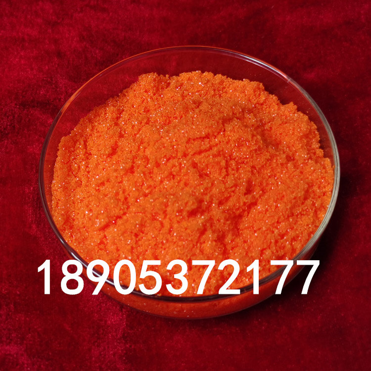 外观性状:桔红色单斜晶系细小结晶,易溶于水,有潮解性,密闭保存。