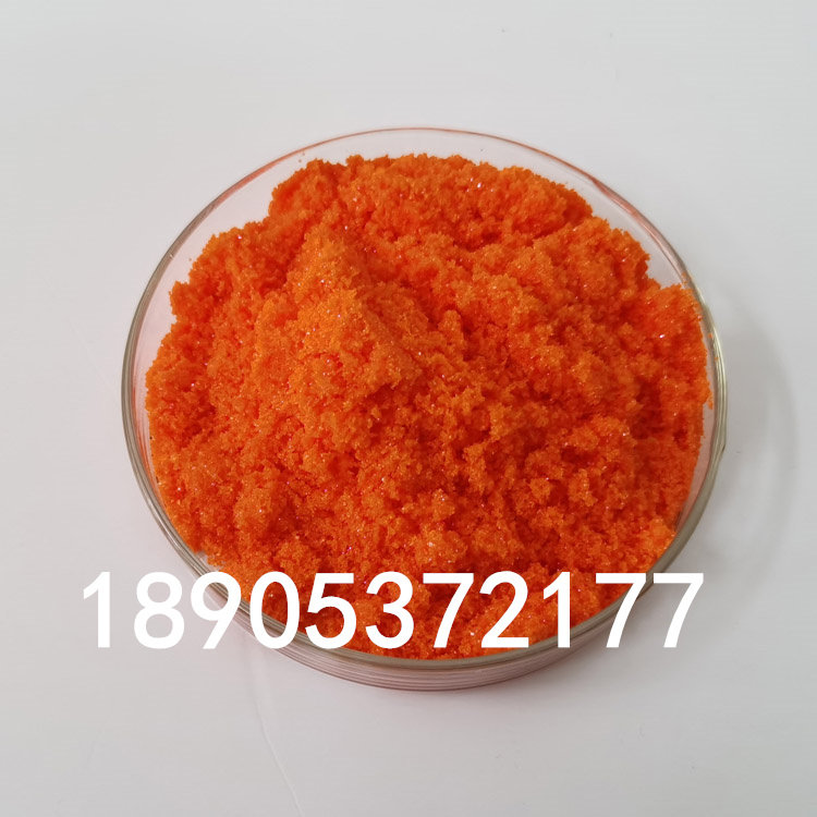 外观性状:桔红色单斜晶系细小结晶,易溶于水,有潮解性,密闭保存。