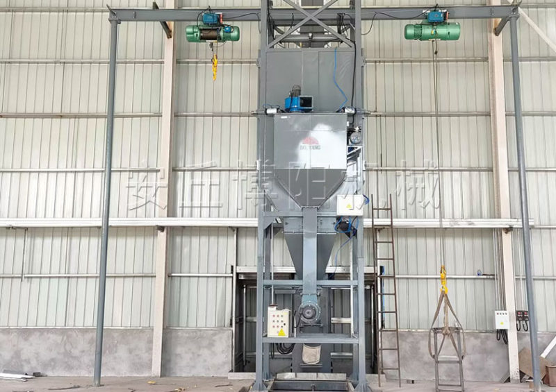 通过叉车或电动葫芦tisheng料袋到进料口,进行压袋。人工将包装袋下料口拆开或者自动破袋后,打开流量控制阀和附带的滚动或拍打装置,促使包装内的物料通过自重落到下方料斗中。