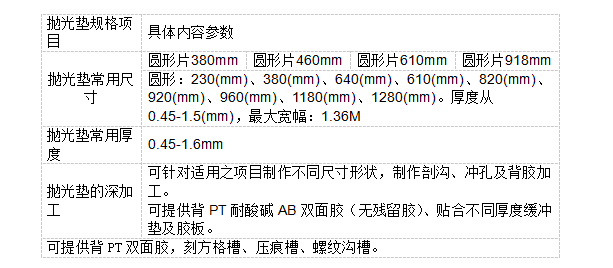 v  基层材料采用微细纤维,厚度均一性及压力均一性都优越,抛光效率高