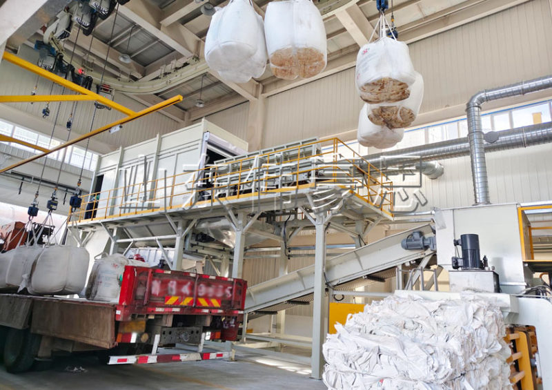 1.高效拆包与产能跃升:设备支持24小时不间断运行,兼容500-3000kg吨袋,处理能力达40包/小时以上,较人工拆包效率提升100%以上。采用机械手臂和割刀装置,能够快速、准确地完成拆包,单包处理时间仅需1-2分钟。