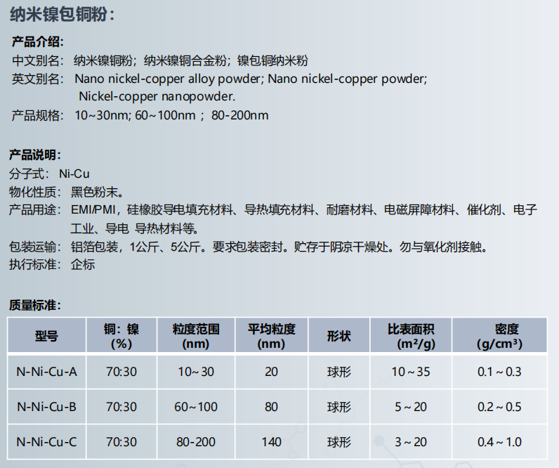 纳米镍铜粉,纳米镍铜合金粉,镍包铜纳米粉