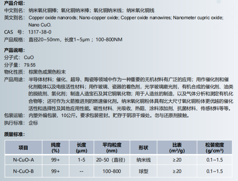 纳米氧化铜棒,氧化铜纳米线,纳米氧化铜线