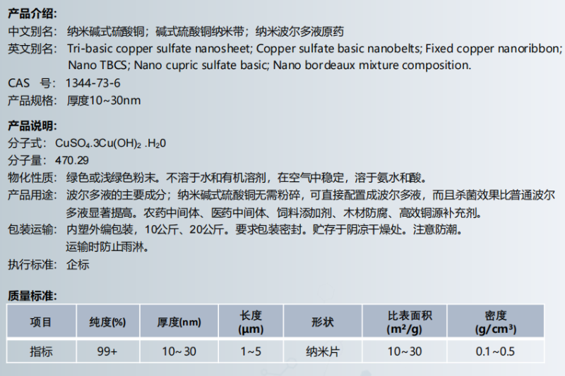 纳米碱式硫酸铜,碱式硫酸铜纳米带,纳米波尔多液原药