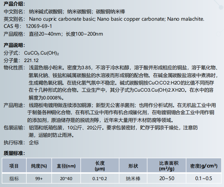 纳米碱式碳酸铜,纳米碳酸铜,碳酸铜纳米棒