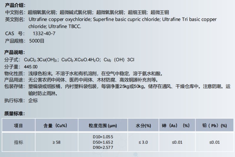 超细氧氯化铜,超微碱式氯化铜,超微氧氯化铜